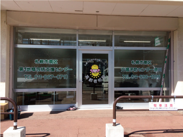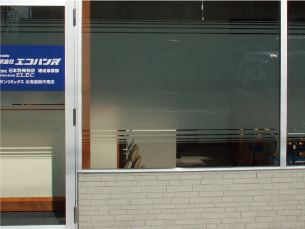 インクジェットプリンターで印刷したシートをガラスに貼付。光を通さないので、デッドスペースの目隠しにもなります。