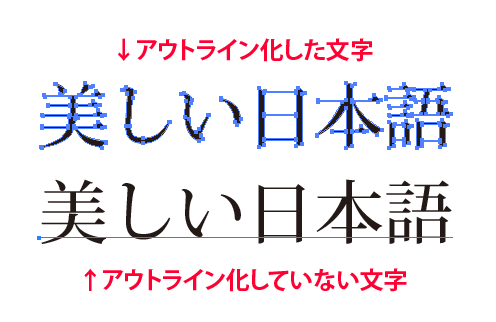 (アウトライン化されていないと、お客様の意図しないフォントに置き換わって印刷されてしまいます)